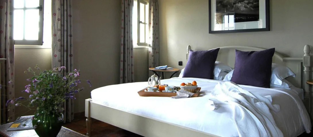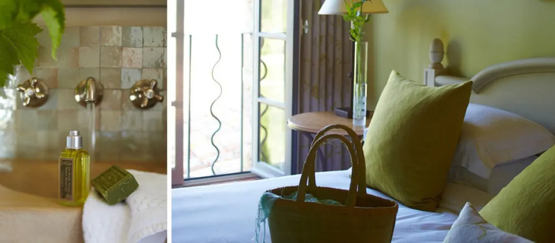 Os 32 quartos e suites do hotel foram recentemente renovados, iluminados agora por paredes ocres e vibrantes tecidos da Provença. A maioria tem vistas de tirar o fôlego sobre a paisagem que envolve este complexo e todos dão uma sensação de intimidade e reclusão, necessariamente por causa da sua localização, no topo da colina.
