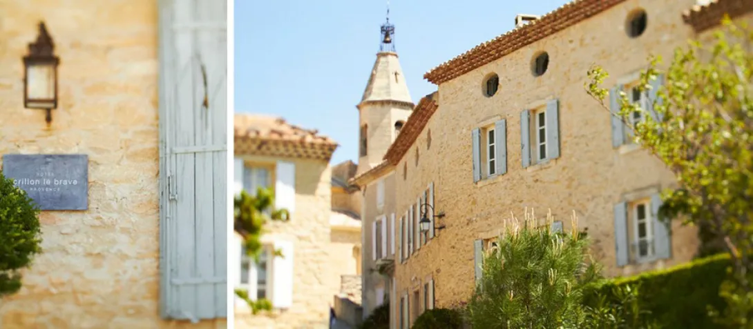 No noroeste da Provença, a meia hora de Avignon, fica a vila medieval de Crillon le Brave. O hotel, com o mesmo nome, é um conjunto de centenárias construções de pedra com vista para os telhados da vila e, mais além, para as vinhas e pomares do vale, em baixo. Os terraços e jardins são perfeitos para apreciar o visual dos campos e de Monte Ventoux.