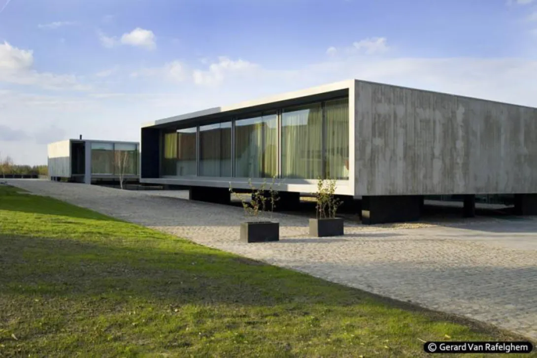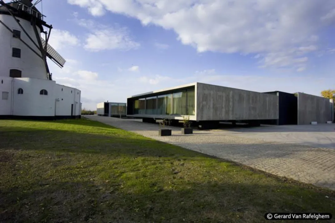 De longe, um dos mais recentes design hotels belga parece ser pouco mais do que um moinho de vento do século XIX renovado instalado numa quinta. No entanto, mais de perto as coisas ficam um pouco mais claras. O D-hotel, do arquitecto belga Govaert en Vanhoutte, é uma imaculada síntese da cultura tradicional com design contemporâneo.A quinta foi renovada para integrar o wellness centre, lounge, bar e área de pequeno-almoço, mas são os quartos, instalados no interior de vários volumes pouco requintados em betão ao lado do moinho de vento que chamam a nossa atenção.Com uma fachada de vidro dolorosamente industrial, os volumes contêm 34 quartos e 11 suites, a cada um dos quais foi atribuída a marca distintiva de um nome conhecido da criatividade belga.A fashion suite, por exemplo, homenageia o estilista belga Natan; a diamond suite o joalheiro belga-italiano Hulchi Belluni; e a Movie suite o actor, escritor e director Jan Verheven.Apesar dos vários embelezamentos e complementos, os quartos resumem-se a um simples, cremoso, e super alinhado luxo, dramaticamente compensado pela estética exterior - um tema realizado de forma consistente em todo o hotel, estranho e maravilhoso.