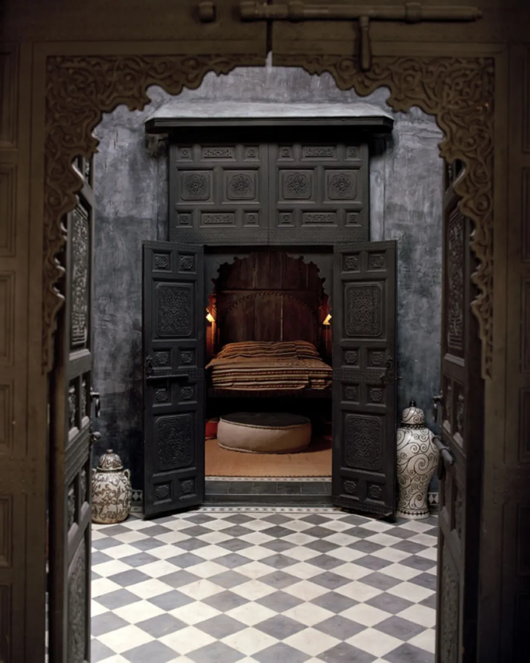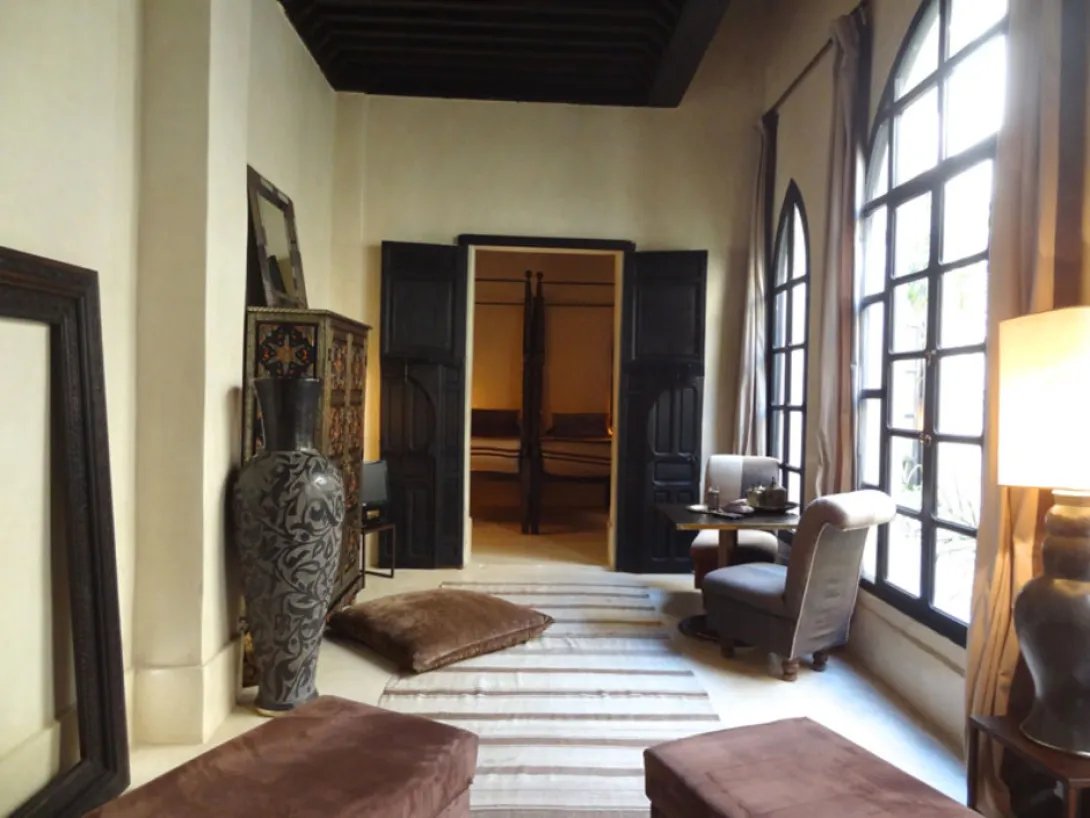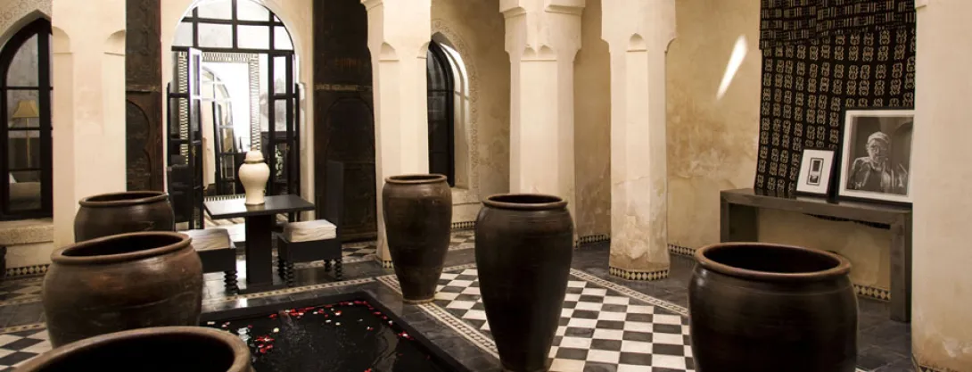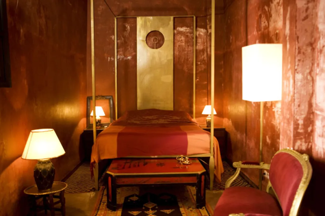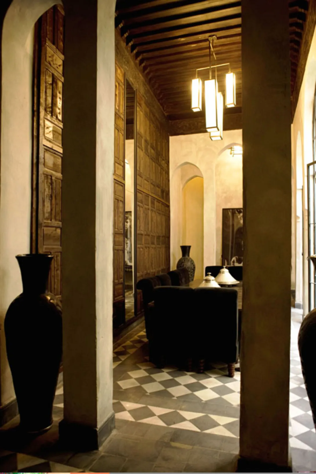 Residência do século XVIII no antigo bairro de Moqf, no coração da Medina de Marrakech, Dar Darma resulta de uma fantasia orientalista italiana. Quando o edifício de dois andares com 1.200 m2 de área foi reconstruído, os valiosos elementos da decoração interior foram preservados: tectos de madeira pintados, deliciosos trabalhos em estuque, portas antigas, janelas interiores de ferro forjado, antigos tectos zouak e tecidos e tapetes originais, que depois se viriam a misturar com bancos forrados com tecidos Versace, tapetes com motivos de leopardo e tiras metálicas.O coração da residência é um pátio. No centro, o suave murmurar da água perpetua a tradição histórica das aristocráticas residências marroquinas.Tem quarto luxuosas suites e dois apartamentos (um dos quais pode ser dividido em dois quartos separados), decorados nas quentes cores de Marrocos. Dispõem de salas com lareiras e quartos com uma ou duas casas de banho. O Azul, com uma ampla sala com lareira no centro, dois quartos e casas de banho com enormes banheiras, é decorado em tons de azul e cinzento, e enriquecido com pinturas a branco e preto.O Vermelho, situado no segundo piso, dispõe também de uma sala com lareira e dois quartos separados por uma belíssima porta de madeira trabalhada.A suite Laranja, que se desenvolve em dois níveis, tem vista para o pátio: no primeiro piso, a entrada e a sala de estar preto e branco. No piso superior, o quarto em tons laranja e dourado, com casa de banho e um pequeno terraço.Ambientes de luz e sombra acolhem os hóspedes nas Patio Suites que, como o nome indica, são viradas para o pátio, e estão decoradas num estilo contemporâneo com referências a detalhes arquitectónicos marroquinos.A Mirror Suite é um tributo ao estilo de vida marroquino. Situada no piso térreo e virada para o pátio, é deorada com tons quentes, do roxo ao violeta.Dar Darma dispõe também de amplos salões virados para o acolhedor pátio, os Dar Darma Lounges, com uma atmosfera ideal para descansar, ler um livro, ouvir música, tomar um chá ou saborear as típicas delícias gastronómicas do país servidas por um staff vestido de negro, e que parece surgir da sombra: a Sala Marroquina, com molduras embutidas nas paredes; a Sala da Lareira, com uma imensa lareira; e a Sala das Arcadas, enriquecida por uma parede de boiserie.Dispõe ainda de um pequeno hammam onde os hóspedes podem desfrutar deste delicioso e tradicional ritual marroquino. Como qualquer casa na medina, o Dar Darma tem no topo do edifício uma imensa açoteia cheia de desníveis e recantos, com espaços sombreados por toldos, dois bassins, e uma vista ilimitada sobre os telhados da Medina que se estende até à Koutoubia, o Palácio de Dar El Bacha e as montanhas do Atlas, ao longe.Os terraços do Dar Darma são ideais para agradáveis momentos de relaxamento, pequenos-almoços, almoços ou jantares.A cozinha, variada, é proposta diariamente pela cozinheira da casa. Sob reserva é possível saborear refeições à base da gastronomia marroquina, como a tradicional sopa de harira, diferentes tajines de galinha, carnes ou verduras, couscous, galinha com limão, tartes e outras delícias.11/12 Sidi Bouharba