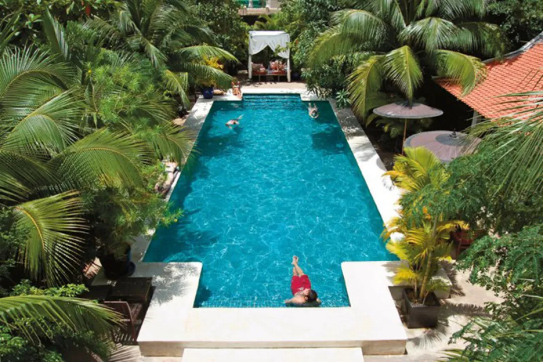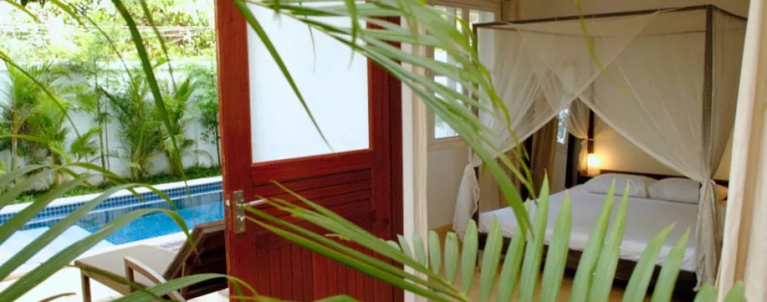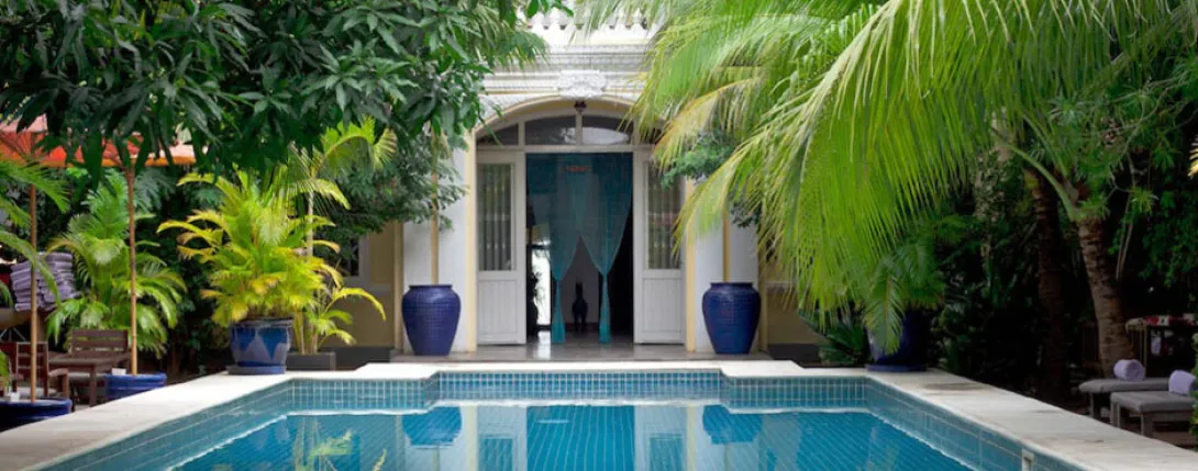 Dizem que a rainha Kossamak construiu esta mansão colonial em estilo Khmer-Francês em meados dos anos 20 do século passado para ficar mais perto de Wat Botum, o Pagode Real onde gostava de rezar. Hoje é um santuário para fugir ao calor e aos assaltos sensoriais da cidade. Os interiores são frescos, com espaços abertos rodeados por colunas, de chão em tijoleira e têxteis e artesanato local como decoração.A indulgência ali é acentuada a cada instante - o transfer desde o aeroporto é feito num carro vintage e oferece massagens de cortesia -, mas o turismo responsável vem em primeiro lugar: os membros do staff, por exemplo, são graduados por uam ONG internacional ligada ao turismo.O Pavilion tem 20 quartos e o restaurante principal, Tepui, fica numa antiga cas chinesa restaurada, a 10 minutos do hotel em tuk-tuk; serve excelentes pratos, como tártato de atum com emulsão de wasabi.No hotel existe um bar junto à piscina que serve comida ocidental e Khmer durante todo o dia, e é impossível resistir ao charme da velha piscina de um azul imaculadamente translúcido...