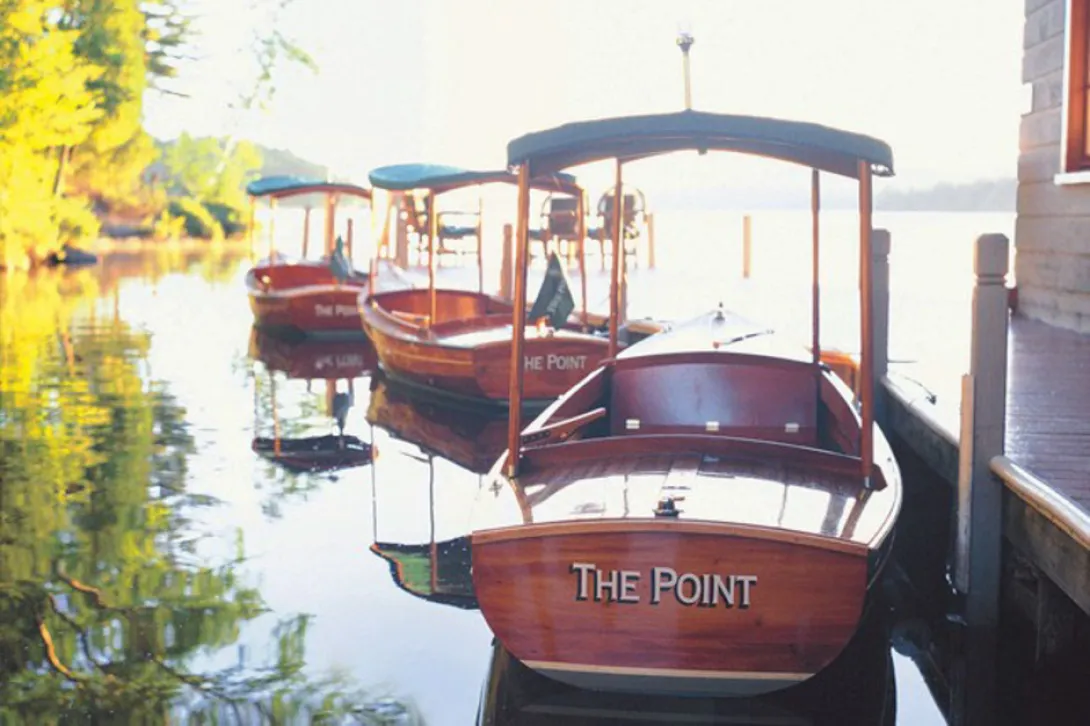 Uma parte muito diferente de Nova York, o The Point no lago Saranac é a última e mais luxuosa adição dos Adirondack Great Camps, e um verdadeiro paraíso para os travel connoisseurs.Muito popular e com uma clientela famosa, The Point é um fantástico retiro instalado numa península que se estende pelo Saranac. Dispersos por quatro lodges construídos de madeira local e pedra tem 11 quartos com enormes janelas panorâmicas e uma mistura eclética de mobiliário antigo e toques rústicos, tais como troféus de caça nas paredes e tapetes em pele de urso. Com tudo isto pode apetecer-lhe apenas ficar todo o dia por ali, naquele conforto macio... mas não sabe o que perde!Há natação e canoagem no lago, passeios numa frota de antigos e belos barcos de madeira - pode agarrar no seu barco eléctrico e dirigir-se a uma qualquer ilha deserta e deliciar-se com o fantástico cenário e saborear um delicioso piquenique. O lugar é fantástico também para longas caminhadas durante todo o ano, enquanto cross-country skiing, pesca no gelo, ou skating na neve são um must no inverno. E não se preocupe com o equipamento, pois o The Point tem sempre tudo preparado e adequado para o seu tamanho e capacidades.Depois de tanta actividade é só esperar que o chef do lodge termine de preparar a refeição gourmet que pediu antecipadamente (adaptada às suas preferências alimentares) e saboreá-la numa mesa com vista para o lago. Ou, se quiser mesmo entrar no espírito do lugar, não deve mesmo perder a festa do jantarA festa da noite (uma deliciosa bouillabaisse ou um simples salmão cozido) é uma festa-jantar no Great Hall em frente a uma imensa lareira de pedra, para o qual todos se vestem a rigor.Os Adirondacks foram a primeira grande "imensidão selvagem" americana: milhares de quilómetros de lagos, florestas e montanhas no norte do Estado de Nova Iorque.Foi ali que ladrões, banqueiros e magnatas ferroviários do final do século XIX e início do século XX construiram os seus chamados camps - elegantes mansões de madeira e de, que incluíam dezenas de empregados e profissionais de golfe, salões de festas e mesas de bilhar.Construído por William Avery Rockefeller em 1933, o The Point fica a cerca de 6 horas de carro da cidade de Nova Iorque.