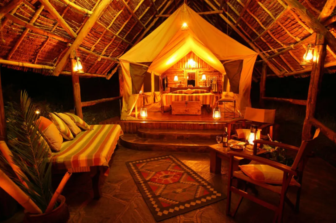 Tortilis Camp oferece vistas panorâmicas sobre o Kilimanjaro, erguendo-se das planícies semi-áridas - a montanha mais alta de áfrica.Amboseli introduz-nos no vasto espaço africano: um paraíso para os fotógrafos. Famosa pelos seus mais de 1.000 elefantes, leões, chitas, hienas e chacal, esta imensa floresta de acácias Tortilis que rodeia o camp (que deu origem ao nome do lodge) é ainda anfitriã de muitas espécies de aves e, literalmente, milhares de ninhos pendurados acima das tendas adicionando um empolgante refrão às madrugada únicas.Vencedor do prestigiado prémio de eco-turismo da British Airways, Tortilis foi pioneiro no turismo de baixo impacto ambiental e elevado conforto. Para além das 16 tendas eco-friendly, uma casa particular e uma tenda familiar, todos de frente para o Monte Kilimanjaro, os hóspedes têm acesso a um espaço privado com mais de 12 mil hectares de frente para o monte; ali pode desfrutar de passeios com experientes guias Masai, pequenos-almoços em pleno mato e sundowners. E, por estranho que possa parecer, Tortilis é famosa pela culinária do norte da Itália com base em receitas originais de família - os pratos são concebidos com ervas, frutas e legumes cultivados no jardim da propriedade.Inspirado por Stefano Cheli, Tortilis Camp é o resultado de 21 anos de experiência em safaris, tendo ganho uma reputação incomparável de charme e atenção aos detalhes.Tortilis é um elegante small lodge instalado mesmo ao lado de LIimbarishi Hill, com vistas magníficas sobre a planície e o Kilimanjaro. As suas tendas são amplas e espaçosas, com duas camas kinge size elegantes casas de banho privativas. Há um lounge principal, bar e sala de jantar, todos primorosamente construídos com materiais naturais e telhados de colmo.
