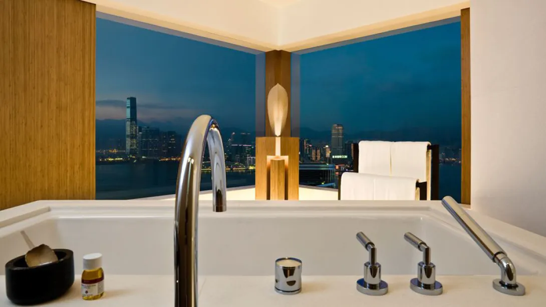 Passa-se uma cortina plissada em pedra concebida por Thomas Heatherwick (o mesmo que idealizou as pétalas do caldeirão dos Jogos Olímpicos de 2012), e sobe-se através de uma escada rolante até ao coração deste santuário.Ocupando os últimos 10 andares de um arranha-céus acima do porto, The Upper House é descrito por Andre Fu, o seu arquitecto, como uma "viagem poética, para cima" até à paz. Com 117 quartos, é maior do que um hotel boutique, e o seu décor chinês contemporâneo e arrojado é no entanto mais sóbrio do que o de alguns pequenos e extravagantes hotéis de marca.Materiais naturais como carvalho claro e calcário, bambu polido, mármore e veludo emprestam minimalismo aos interiores. O check-in no quarto evita as chegadas caóticas e há uma televisão escondida no espelho da casa de banho... os quartos são espaçosos e enormes com janelas do chão ao tecto que oferecem vistas soberbas sobre a cidade.No 49.º andar, e passada a ponte do átrio, mais vistas sensacionais e alimentos frescos do mercado (salmão selvagem ou cordeiro roulade por exemplo) no Café Grey Deluxe. Como um quebra-cabeças chinês, cada elemento da sua experiência neste hotel foi pensado com suave precisão.