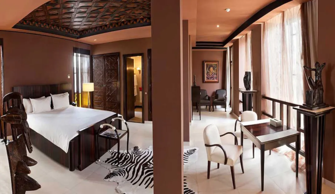 Apaixonado pelo período de 1920-1930, o proprietário recolheu peças em todo o mundo para sensibilizar o visitante conhecedor ou o amante da arte e da beleza.Após cinco anos de colaboração com mestres marroquinos que trabalharam a madeira, o gesso, o tadelakt, o mármore, a cerâmica, o ferro forjado, o vidro, a tapeçaria e a pintura, estes dois belos riads são agora uma referência na art Déco em Marrocos.Com 10 quartos e suites, Villa Makassar tem ainda uma piscina exterior, outra interior aquecida, um spa, restaurante e lunge bar no terraço.