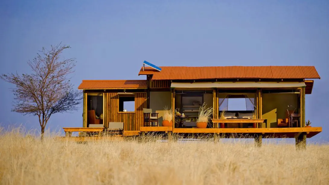 Paz e aventura são distribuídas em doses iguais no Wolwedans Dune Lodge, um fantástico luxury camp instalado em pleno deserto da Namíbia.Construído como se um tented camp se tratasse, mas com a particularidade de ser todo em madeira, o Lodge Dune Wolwedans está em perfeita harmonia com a paisagem do deserto da Namíbia, oferecendo ainda todo o conforto que se esperaria de um hotel de luxo urbano.A adega e a sala de jantar abre-se em varandas com vista sobre as vastas extensões de areia e, à noite, sobre o límpido céu estrelado. Com apenas nove espaçosos chalets, Wolwedans Dune Lodge tem um ambiente intimista para que os hóspedes absorvam a variedade da riqueza deste deserto raro.E o que fazer neste paraíso intocado e longe do mundo? Pode saborear um cocktail no terraço, refrescar-se na piscina, partilhas as suas histórias perto do fogo, relaxar na biblioteca... mas o ideal é explorar a fauna e a flora das dunas da Namíbia durante o dia em inesquecíveis safaris, ou flutuar acima da areia do deserto num balão de ar quente ou, ainda, caminhar deserto dentro para uma experiência mais próxima e íntima da paisagem. E, depois de uma noite de boa gastronomia e bons vinhos, durma sob as estrelas que parecem tão perto que ficamos tentados a tentar tocar o céu!